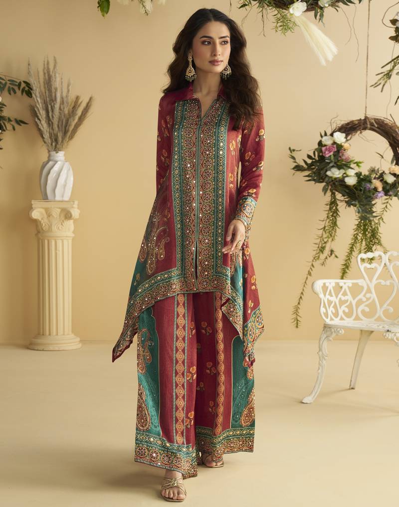 | Product Name | Crepe Co Ord Set With Hand Mirror Work Multicolor Indian Ethnic Outfit For All Sizes | |