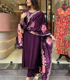 Purple rayon embroidery sequin kurti pant dupatta set stitched