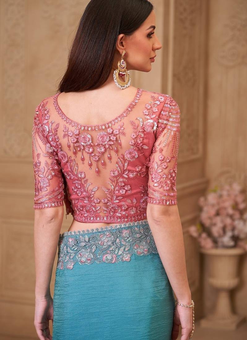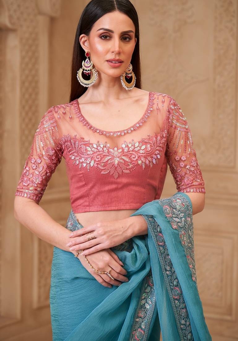 Product Name | Dusty Blue Satin Crush Georgette Saree With Tussar Silk Blouse | |
