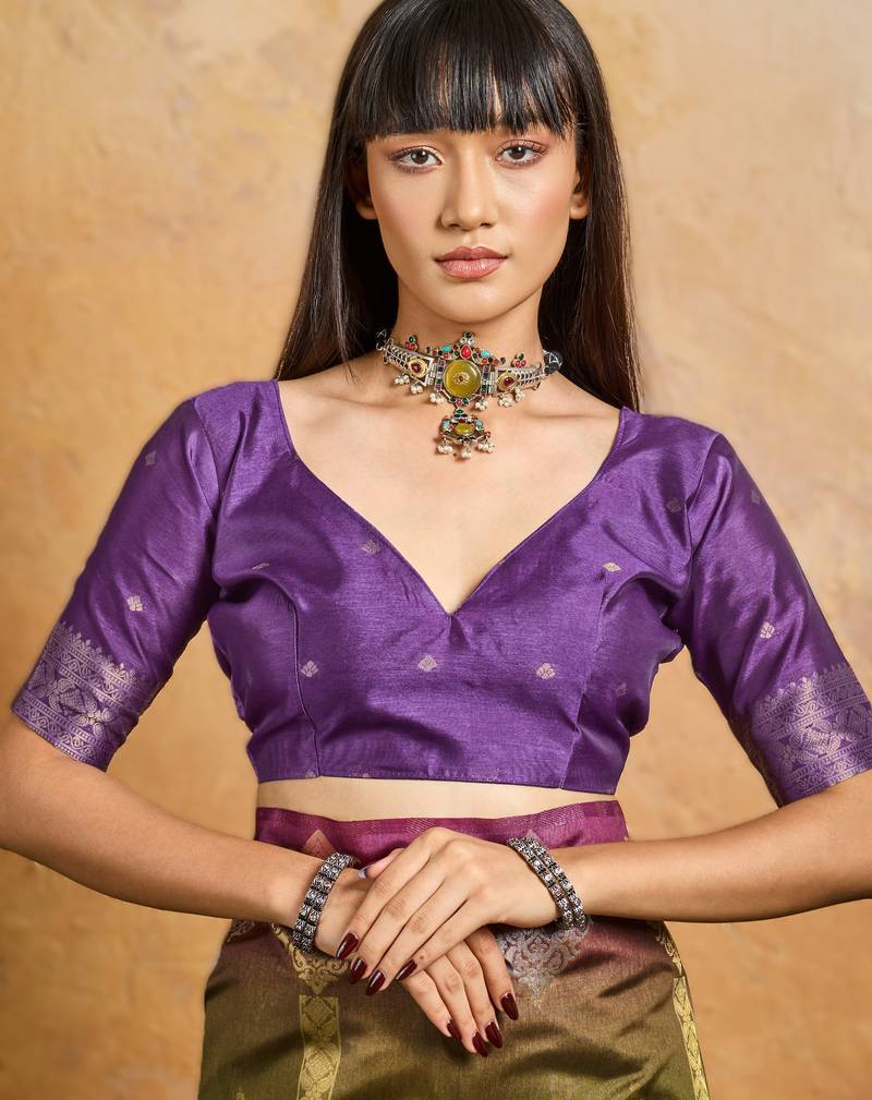 | • | Blouse | : | Color- Purple / Fabric- Silk Blend |