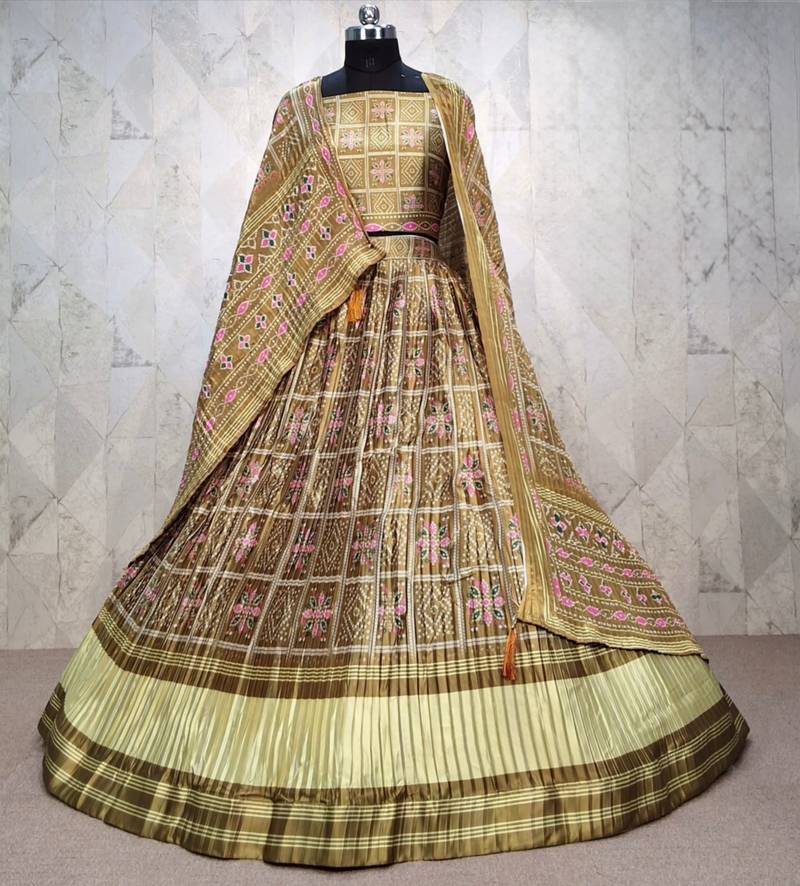 Elegant satin pleated digital print lehenga with blouse & dupatta | premium party wear | with cancan attached