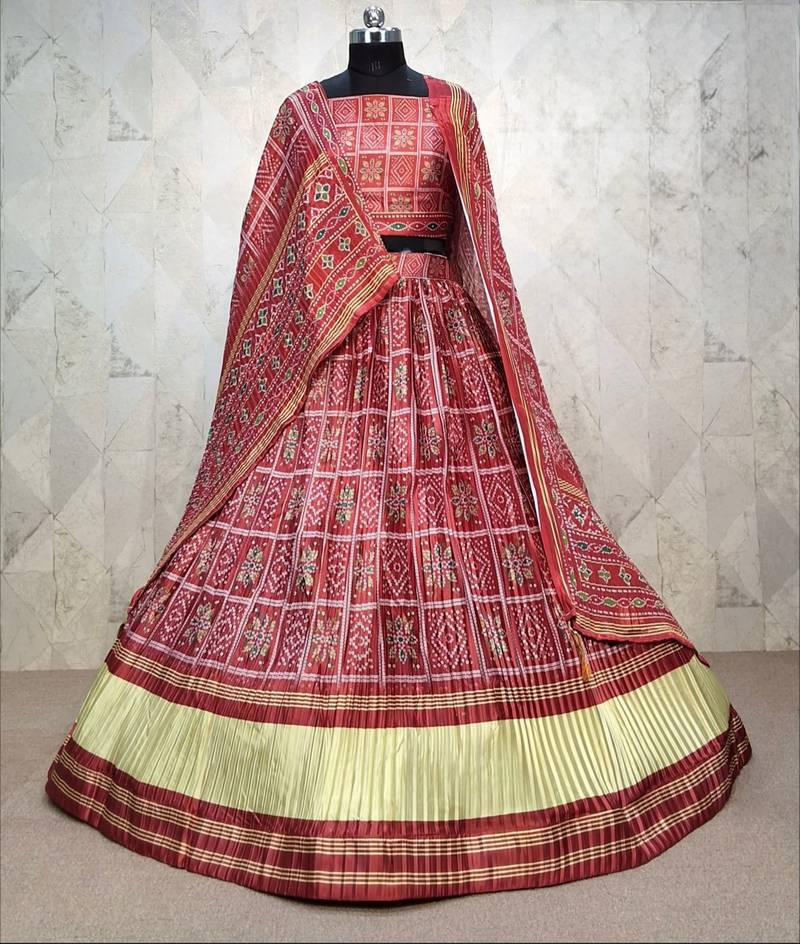 Elegant satin pleated digital print lehenga with blouse & dupatta | premium party wear | with cancan attached