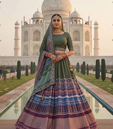 Elegant satin pleated digital print lehenga with blouse & dupatta | premium party wear | with cancan attached