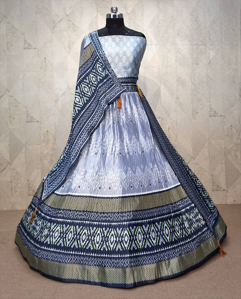 Elegant satin pleated digital print lehenga with blouse & dupatta | premium party wear | with cancan attached