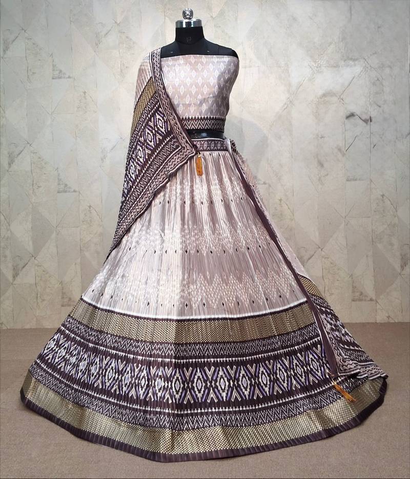 Elegant satin pleated digital print lehenga with blouse & dupatta | premium party wear | with cancan attached