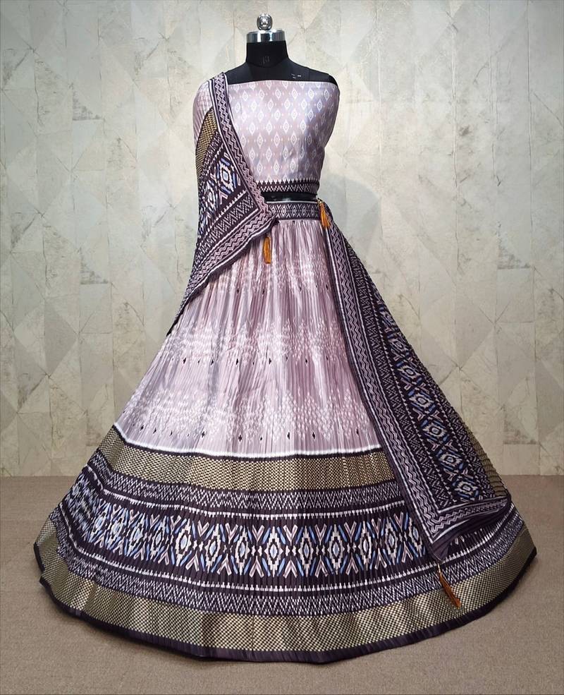 Elegant satin pleated digital print lehenga with blouse & dupatta | premium party wear | with cancan attached