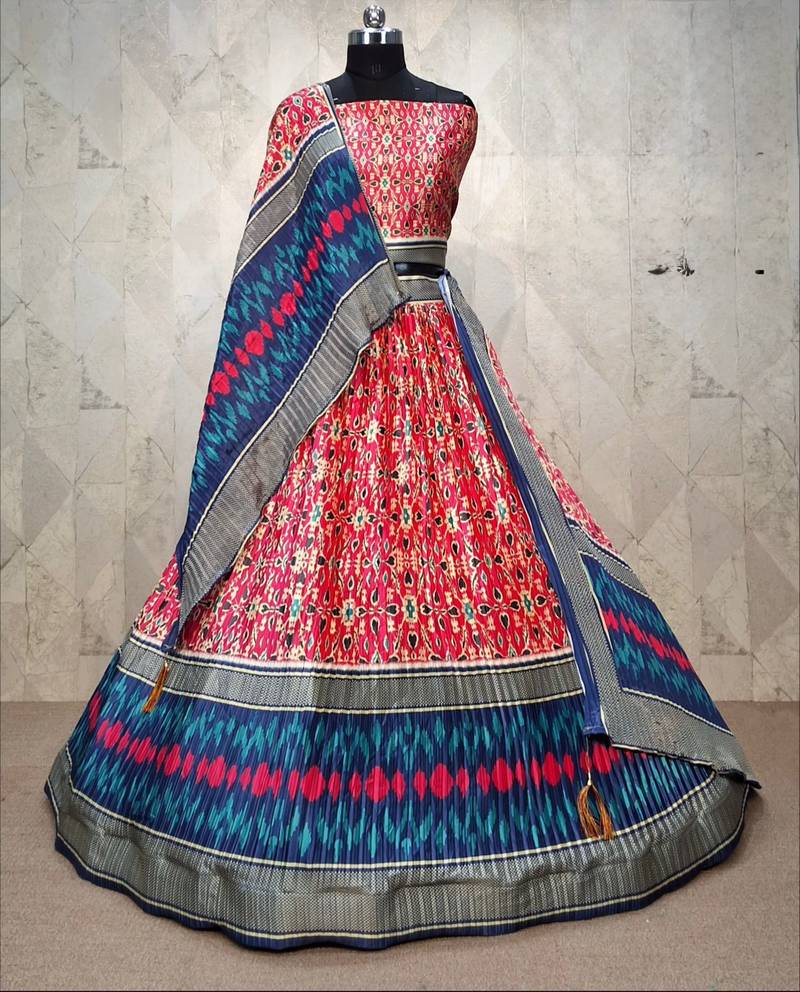 Elegant satin pleated digital print lehenga with blouse & dupatta | premium party wear | with cancan attached