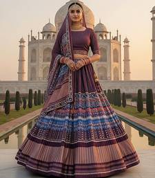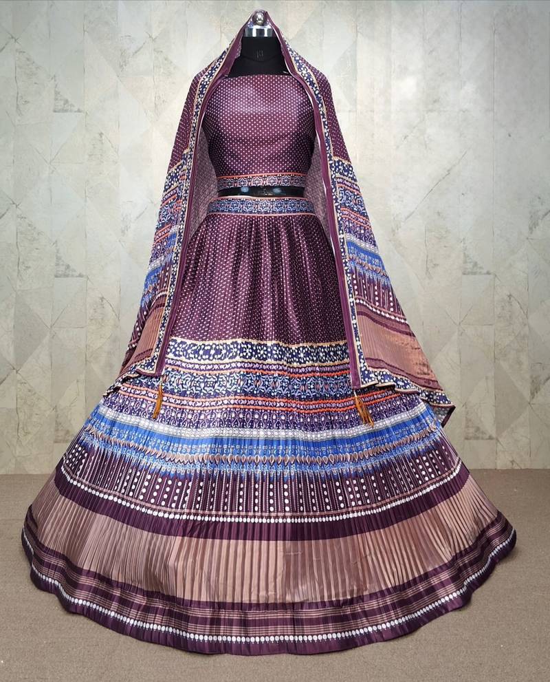 Elegant satin pleated digital print lehenga with blouse & dupatta | premium party wear | with cancan attached