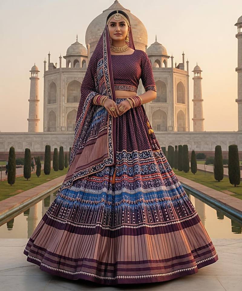 Product Name | Elegant Satin Pleated Digital Print Lehenga With Blouse & Dupatta | Premium Party Wear | With Cancan Attached | |