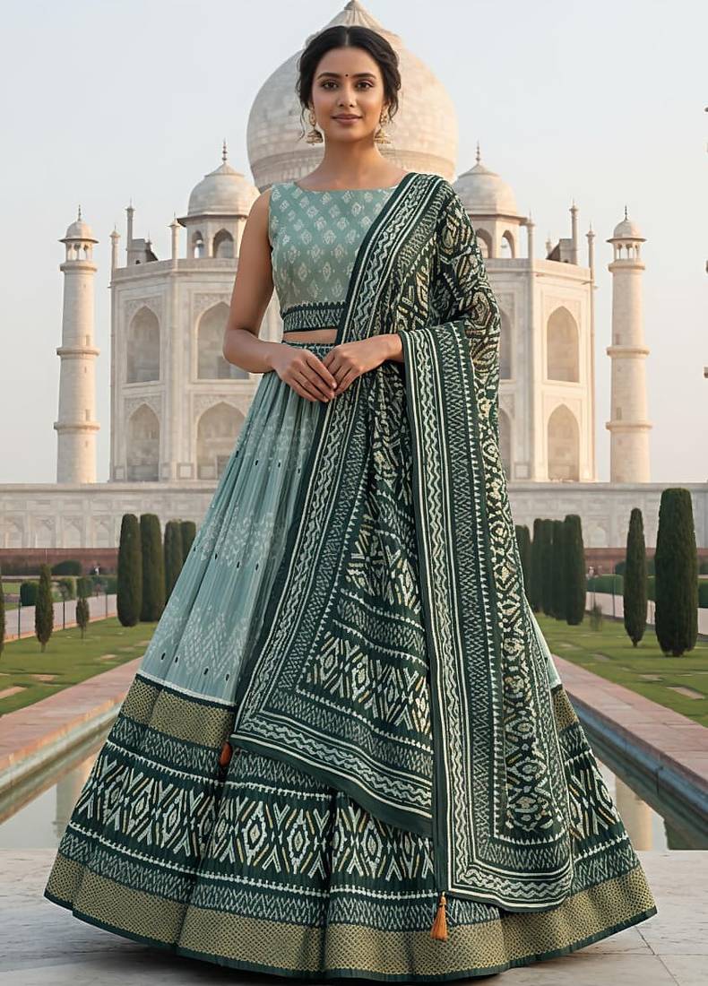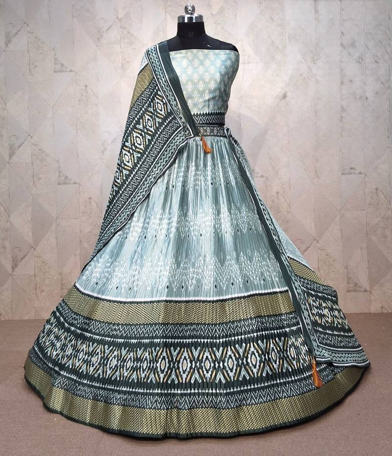 Elegant satin pleated digital print lehenga with blouse & dupatta | premium party wear | with cancan attached