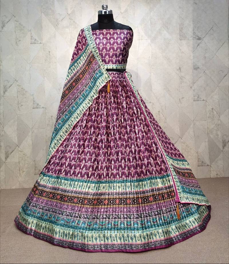Elegant satin pleated digital print lehenga with blouse & dupatta | premium party wear | with cancan attached