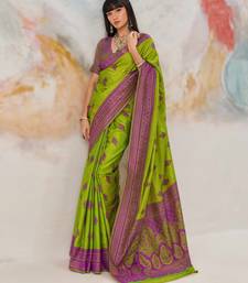 | • | Saree | : | Color- Parrot Green / Fabric- Silk Blend |