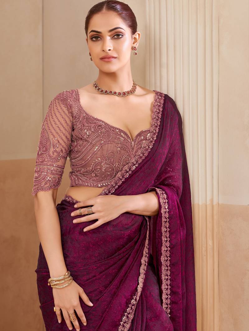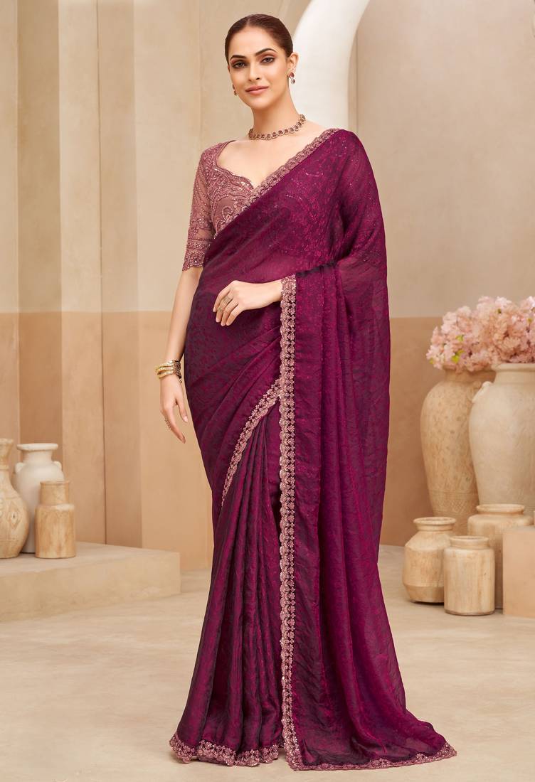 | • | Saree | : | Color- Wine / Fabric- Chiffon |