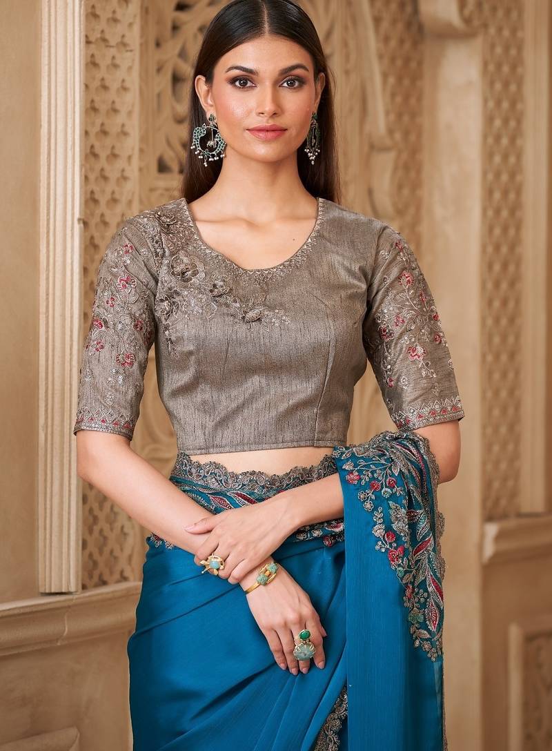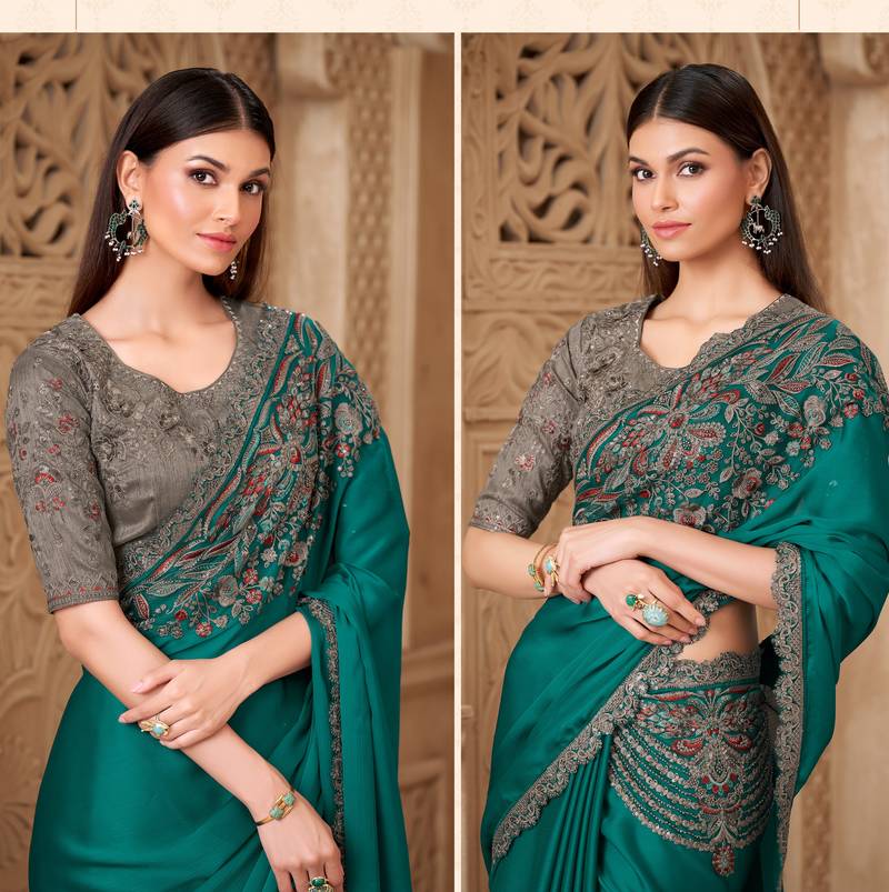 • | Saree | : | Color- Teal / Fabric- Satin |