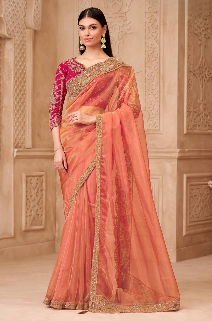 • | Saree | : | Color- Light Orange / Fabric- Georgette |