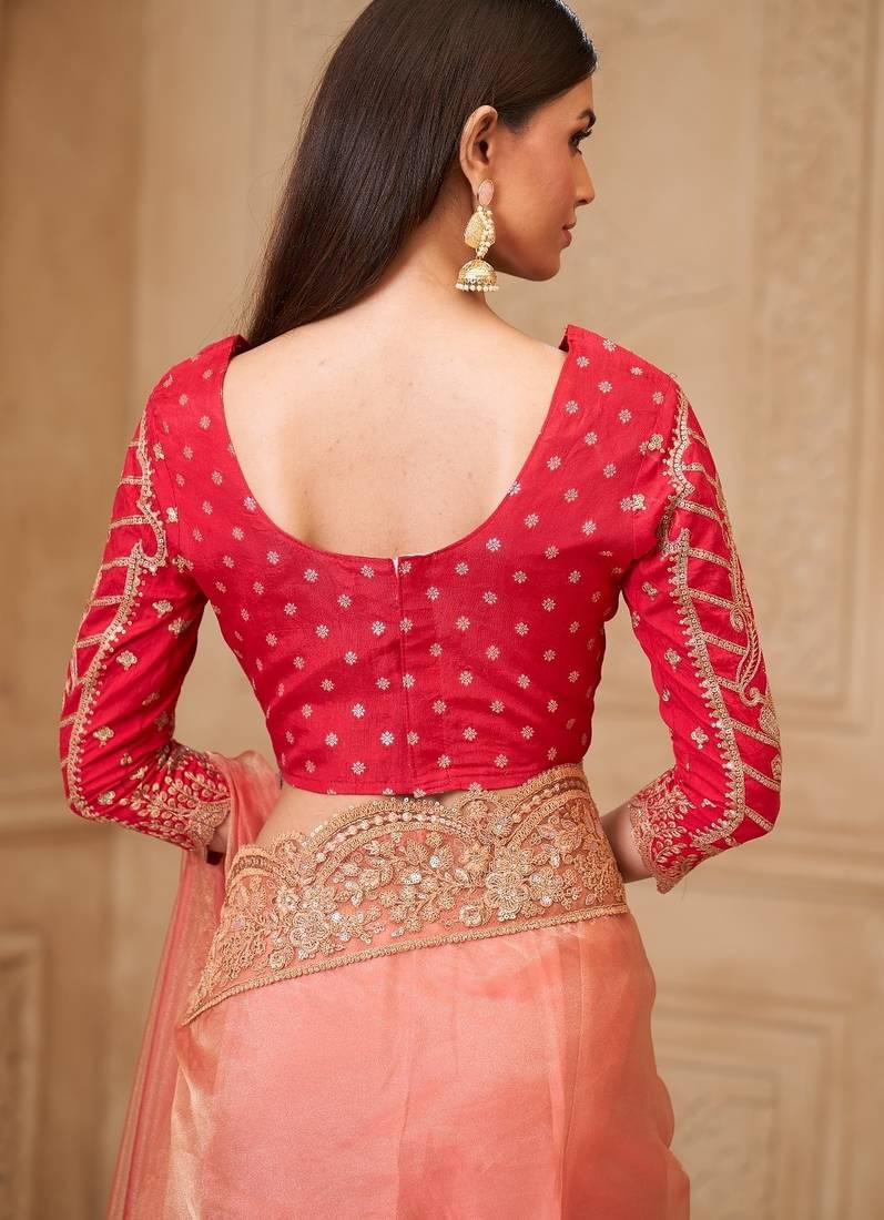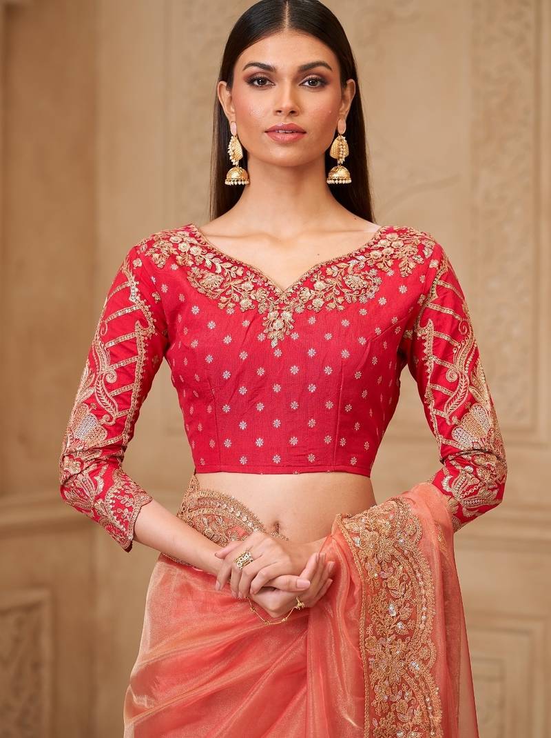 • | Blouse | : | Color- Red / Fabric- Brocade |