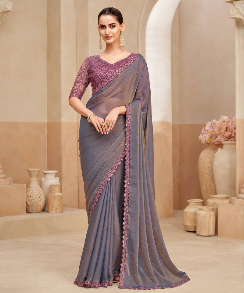 Georgette two tone shimmer saree with embroidered blouse