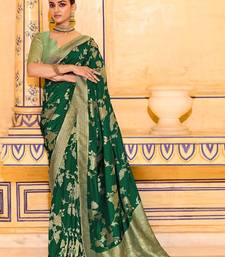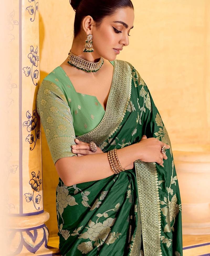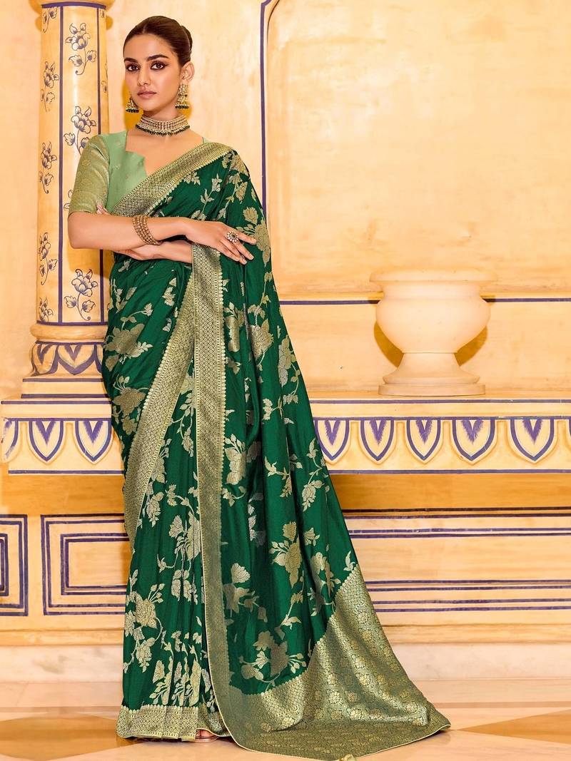 Green color premium crepe silk blend saree with rich zari weaving | elegant party & festive wear