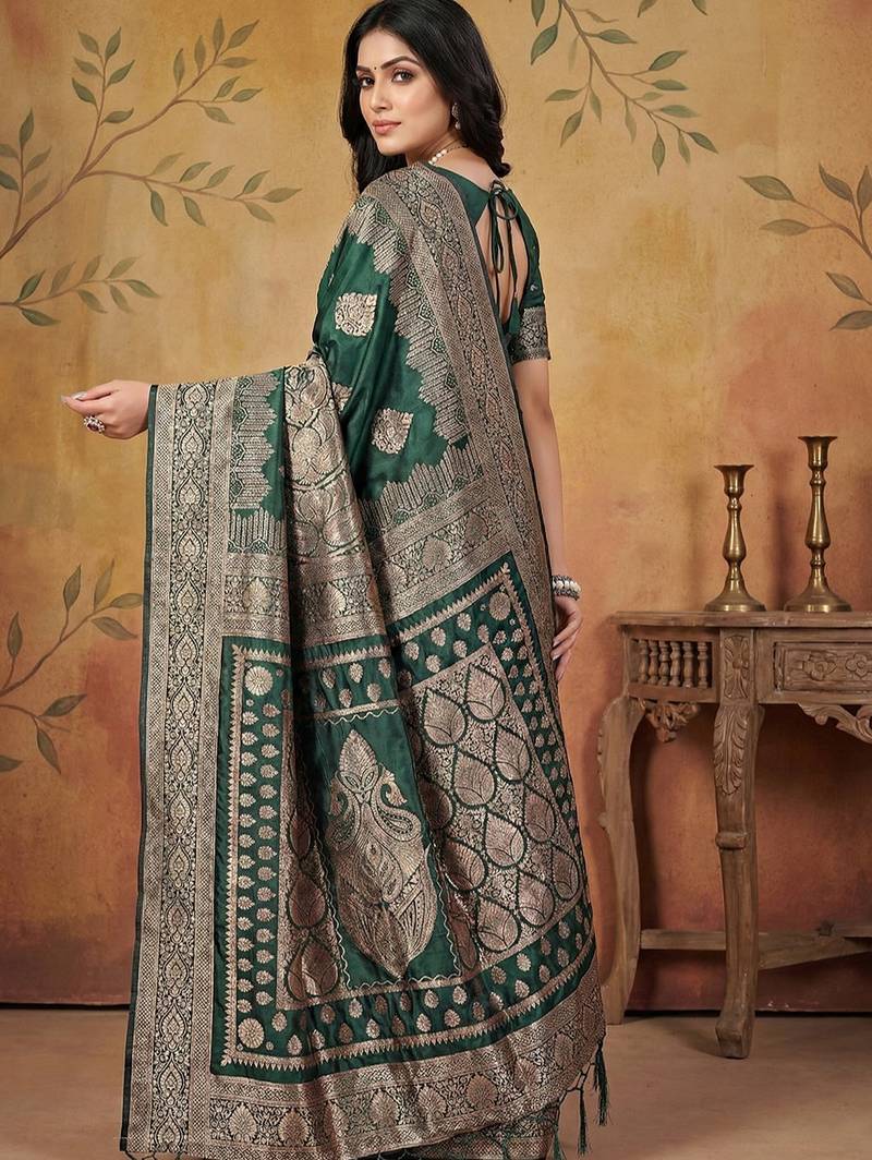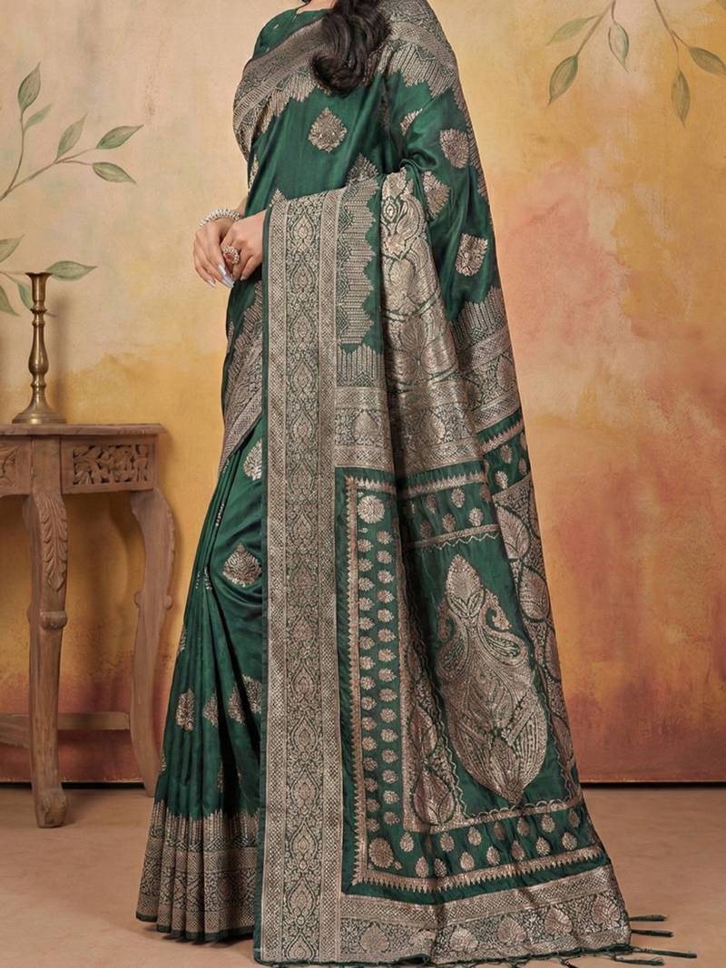 Green elegant silk blend soft fabric saree for women – lightweight traditional saree