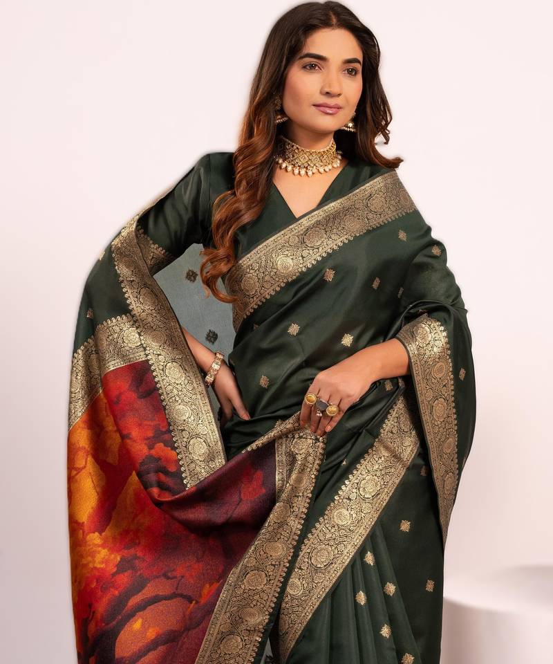 | Product Name | Green Extraordinary Banarasi Silk Saree With Resham Peacock Pallu | |