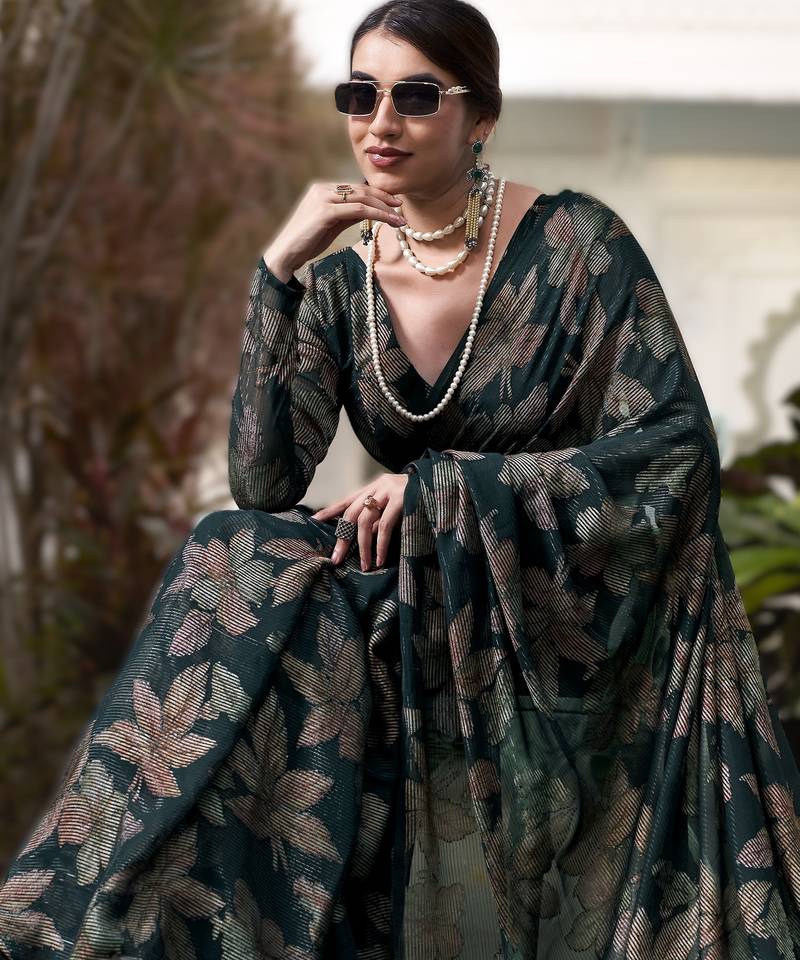 Green floral lurex brasso saree with subtle shine alara catalogue