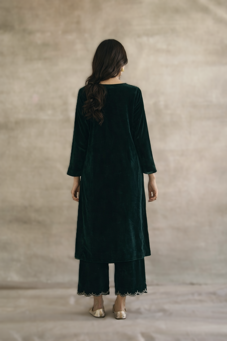 | Product Name | Green Velvet Embroidered Kurti Pant Set With Organza Dupatta | |