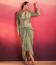| Product Name | Green Tasar Silk Printed Co Ord Set With Blouse & Chic Layer – Designer Ethnic 3 Piece Outfit | |