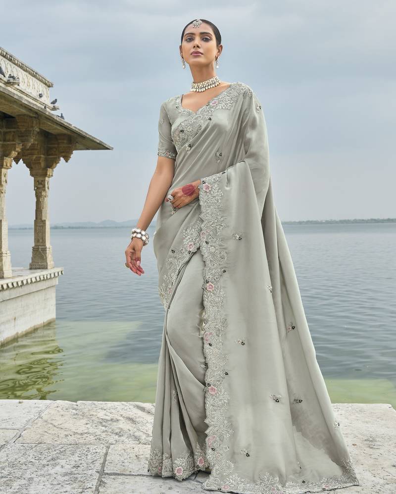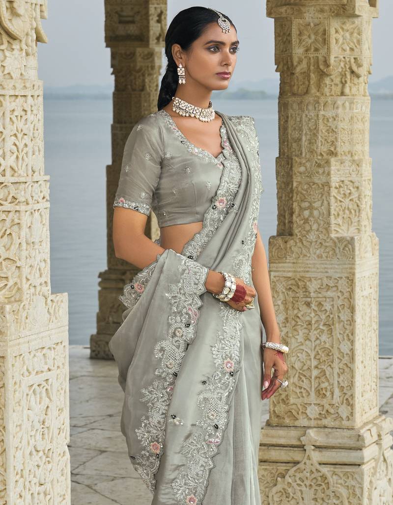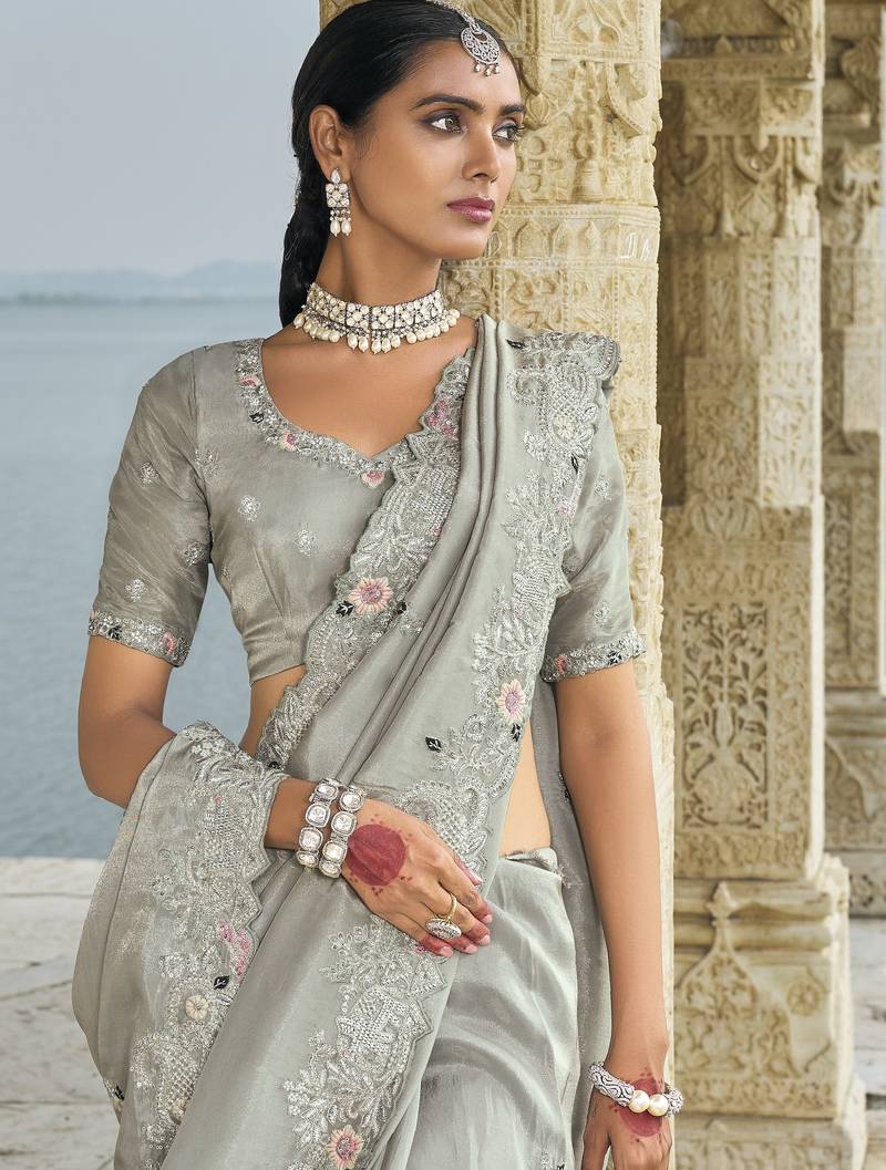 | • | Saree | : | Color- Grey / Fabric- Banarasi |