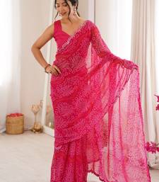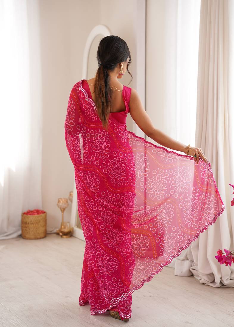 Heavy georgette bandhani print saree with mirror work & cutwork border