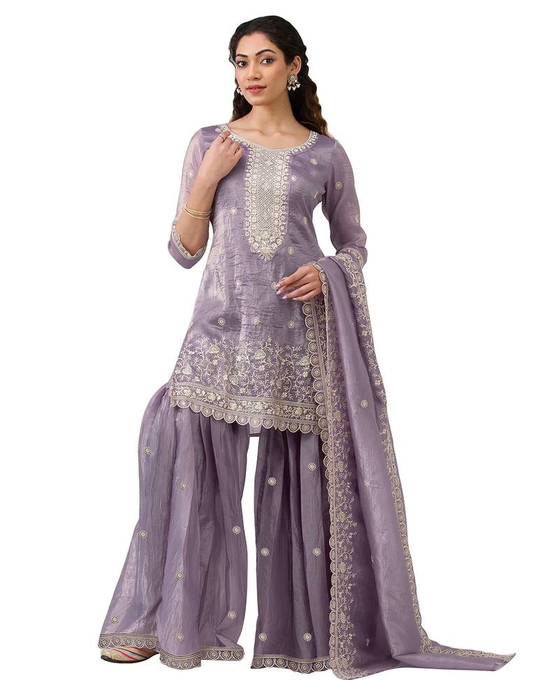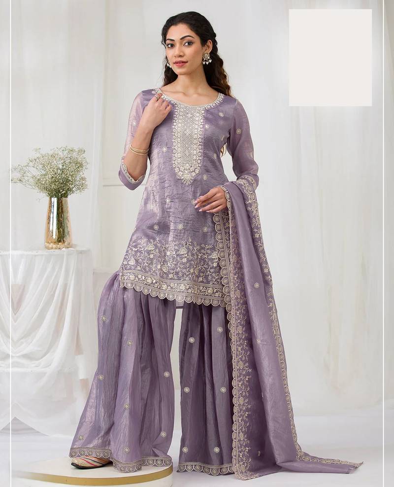 | Product Name | Lavender Embroidery Sequins Work Georgette Sharara Suit | |