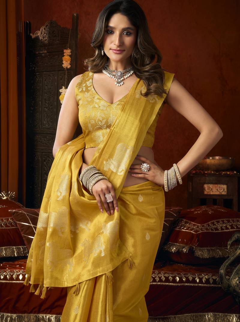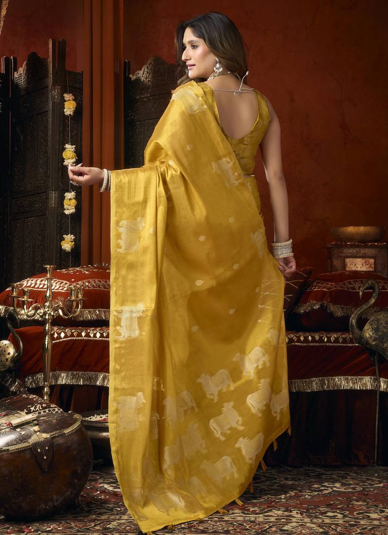 | • | Saree | : | Color- Mustard / Fabric- Tissue |