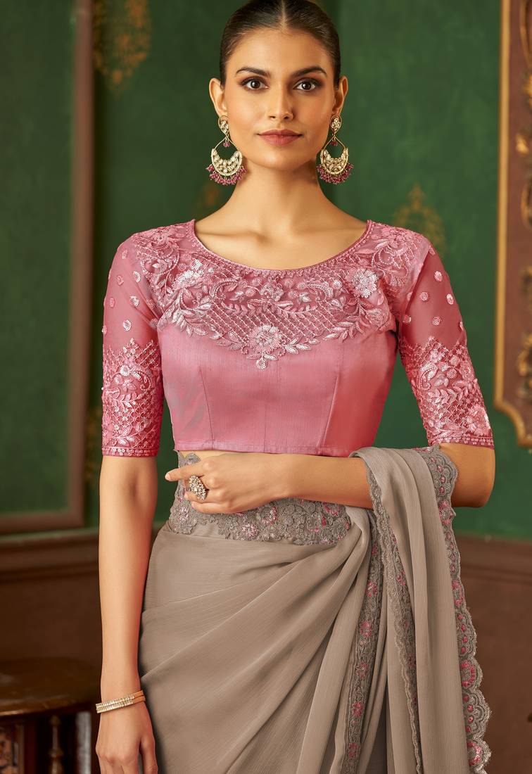 Product Name | Light Brown Heavy Chiffon Silk Blend Saree With Embroidery With Unstitched Blouse | |
