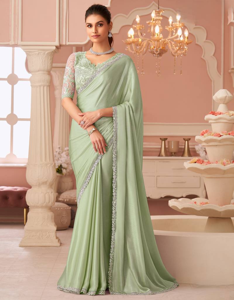 • | Saree | : | Color- Light Green / Fabric- Chiffon |