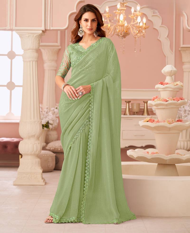 • | Saree | : | Color- Light Green / Fabric- Georgette |