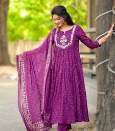 Magenta elegant embroidered cotton suit with printed dupatta stitched