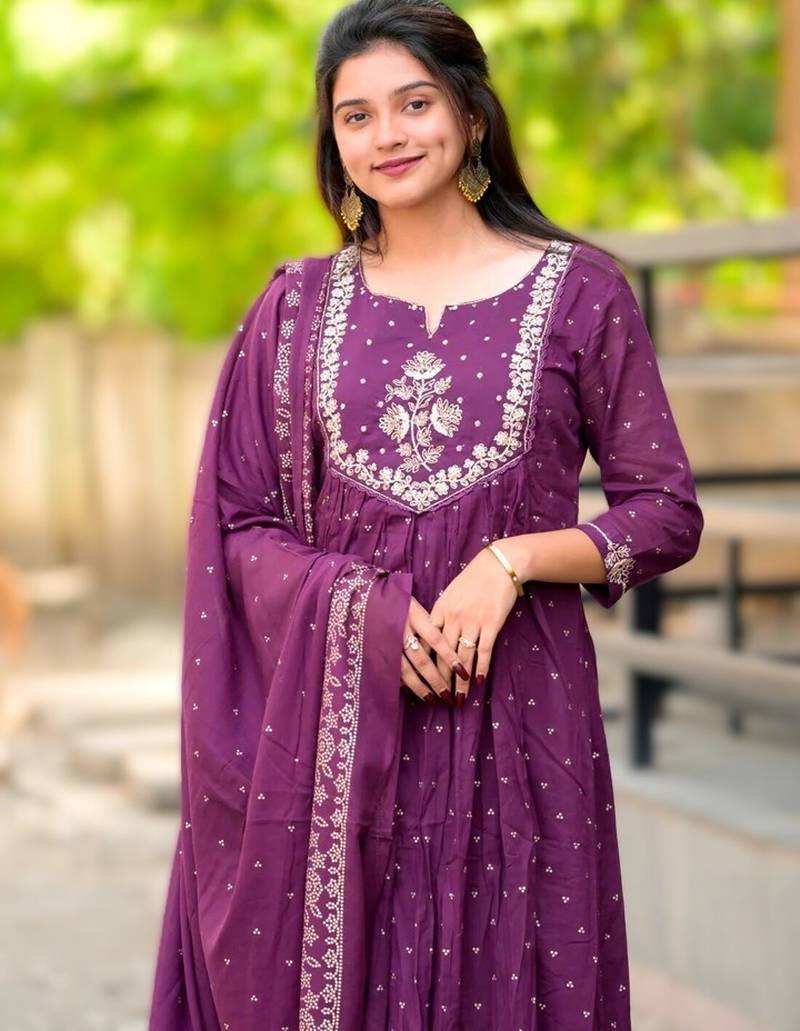 | Product Name | Magenta Elegant Embroidered Cotton Suit With Printed Dupatta | |
