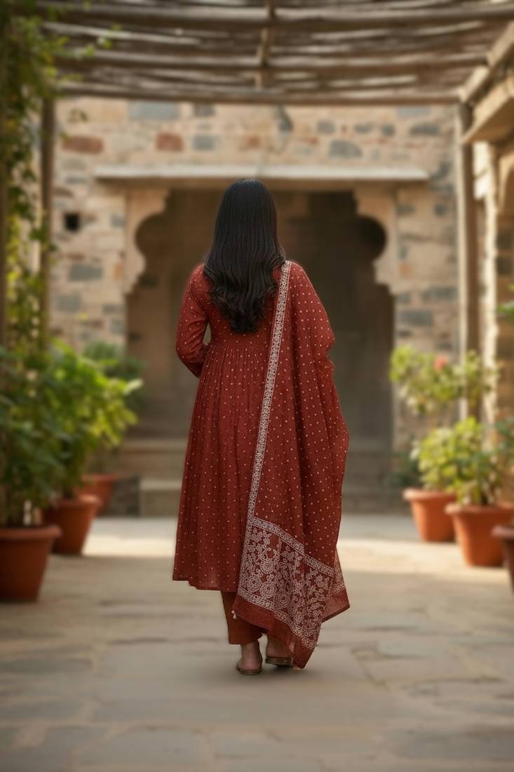 | • | Dupatta | : | Color- Maroon / Fabric- Cotton |