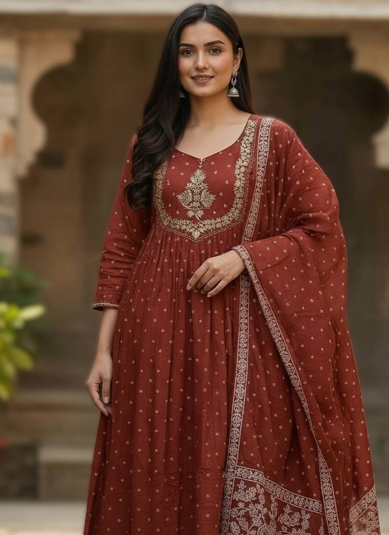 | Product Name | Maroon Elegant Embroidered Cotton Suit With Printed Dupatta | |