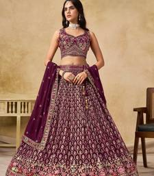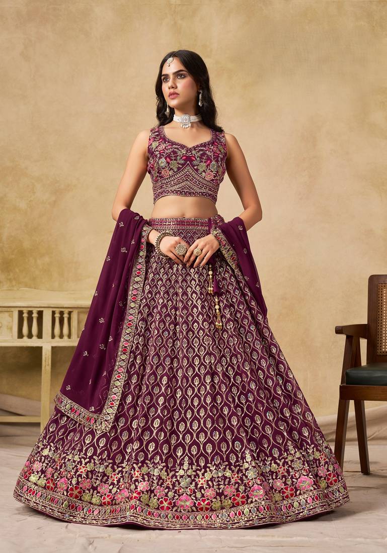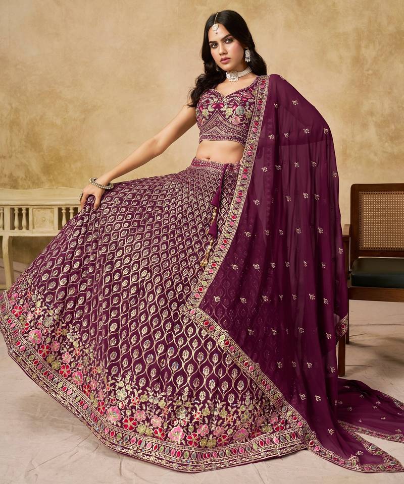 Maroon georgette sequins & thread embroidery lehenga choli with dupatta