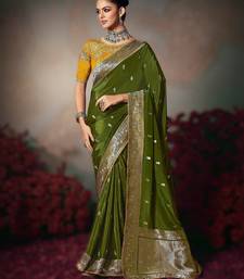 Mehendi wonderful designer chiniya silk blend saree catalog with heavy embroidered blouse
