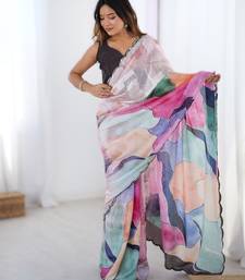 | Product Name | Multicolor Heavy Chinon Printed Saree With Pape Mirror Work & Mirror Border | Designer Party & Wedding Wear Saree | |