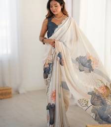 | Product Name | Off White Heavy Chinon Printed Saree With Pape Mirror Work & Mirror Border | Designer Party & Wedding Wear Saree | |
