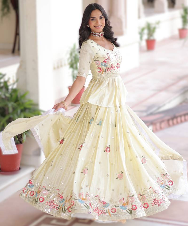 | Product Name | Off White Sequins & Zari Embroidered Silk Lehenga | |