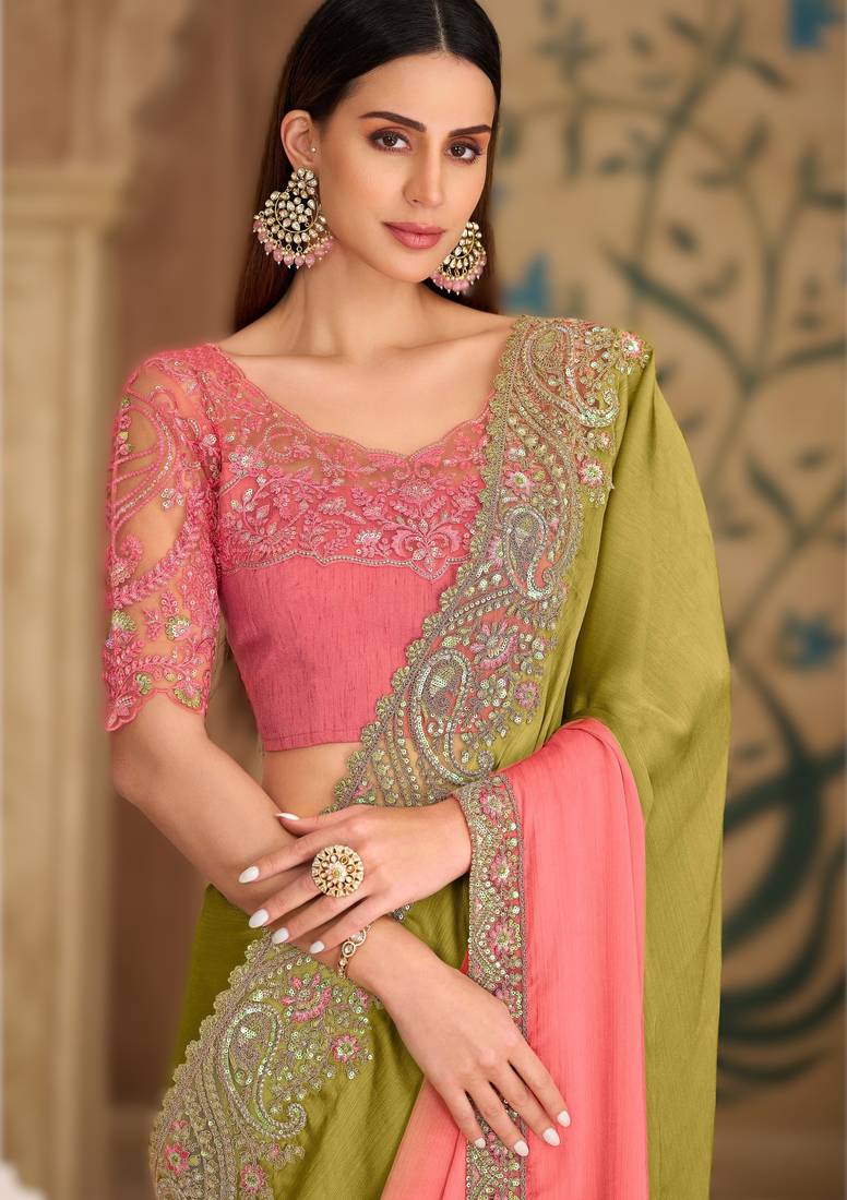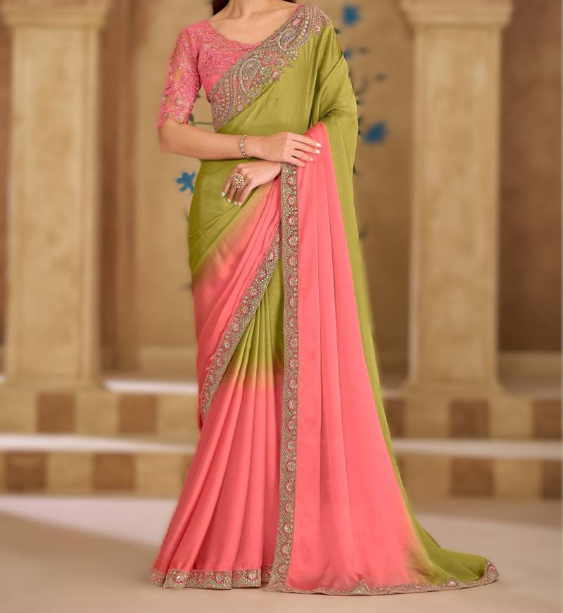 | • | Saree | : | Color- Parrot Green / Fabric- Georgette |