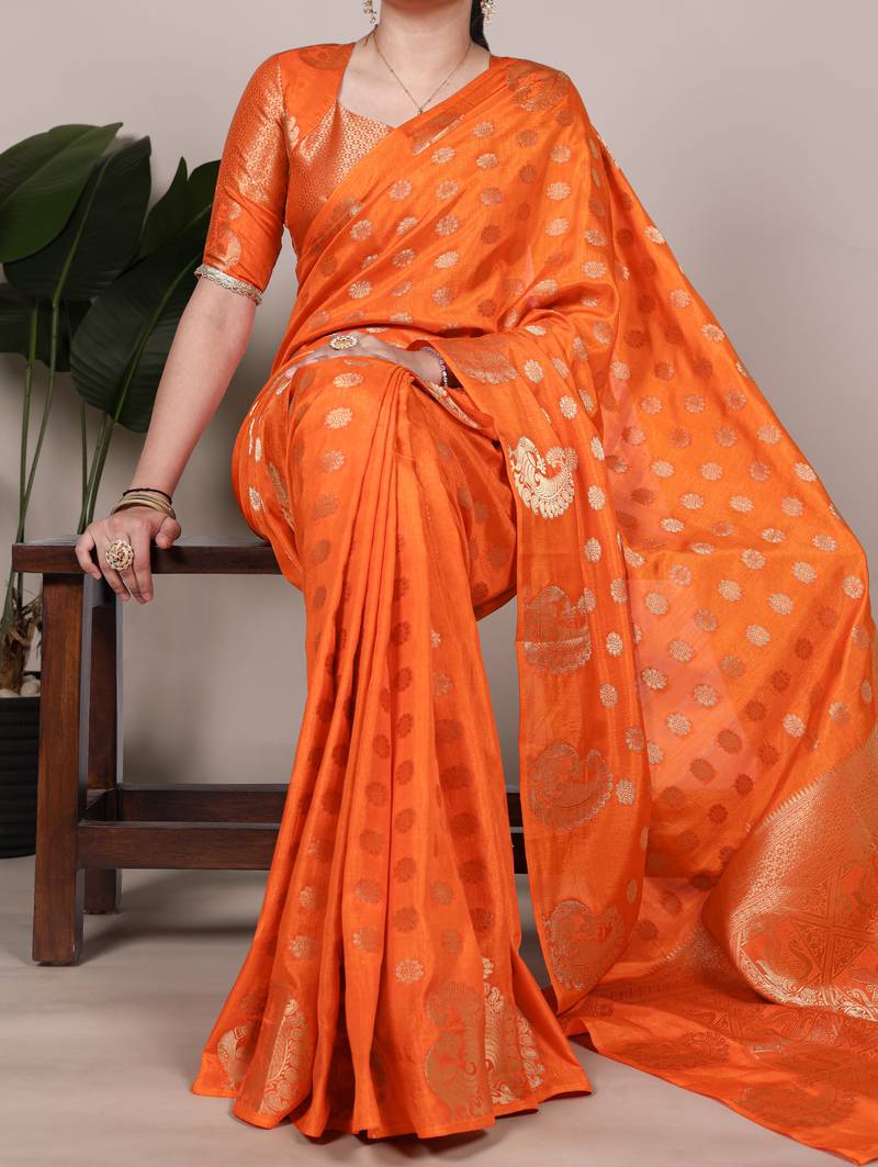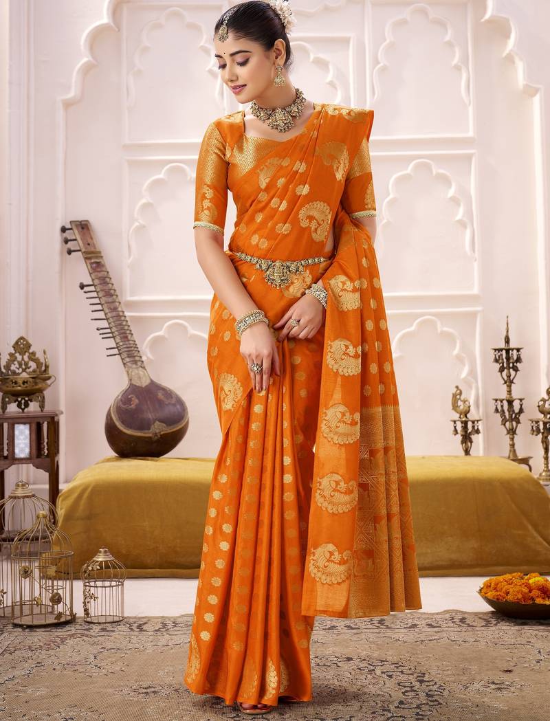 | Product Name | Orange Roop Silk Blend Zari Woven Saree For Festive & Wedding Wear | |