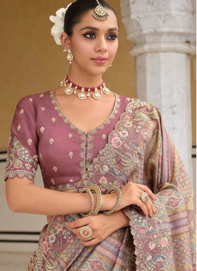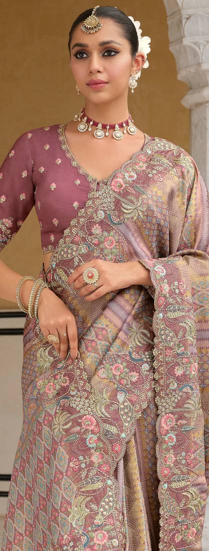 Silk blend saree with premium embroidery, sequins & diamond cutwork