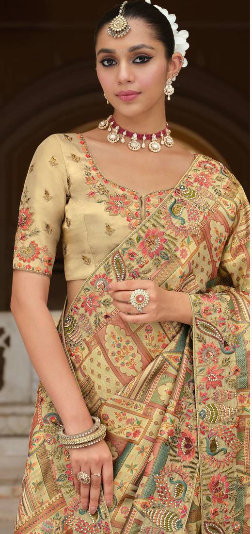 Silk blend saree with premium embroidery, sequins & diamond cutwork