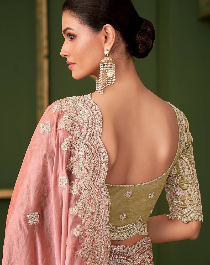 | • | Blouse | : | Color- Olive / Fabric- Tussar Silk |