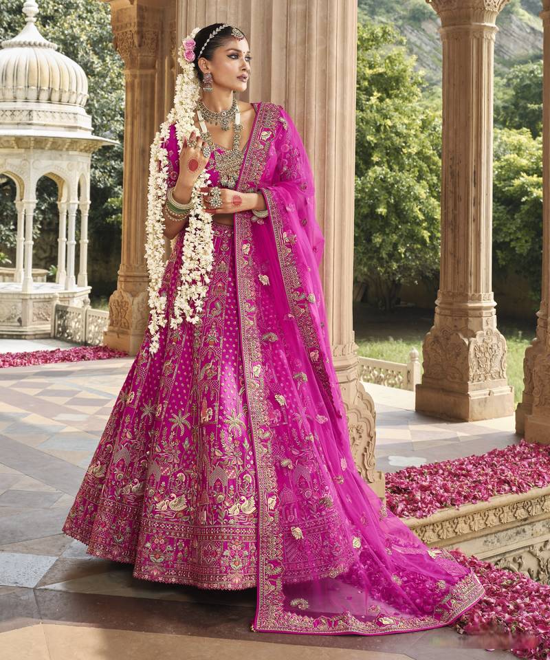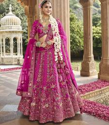 Pink premium silk bridal lehenga with hand embroidery & zarkan work for wedding