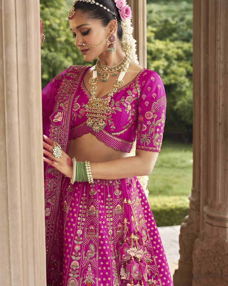 Product Name | Pink Premium Silk Bridal Lehenga With Hand Embroidery & Zarkan Work For Wedding | |